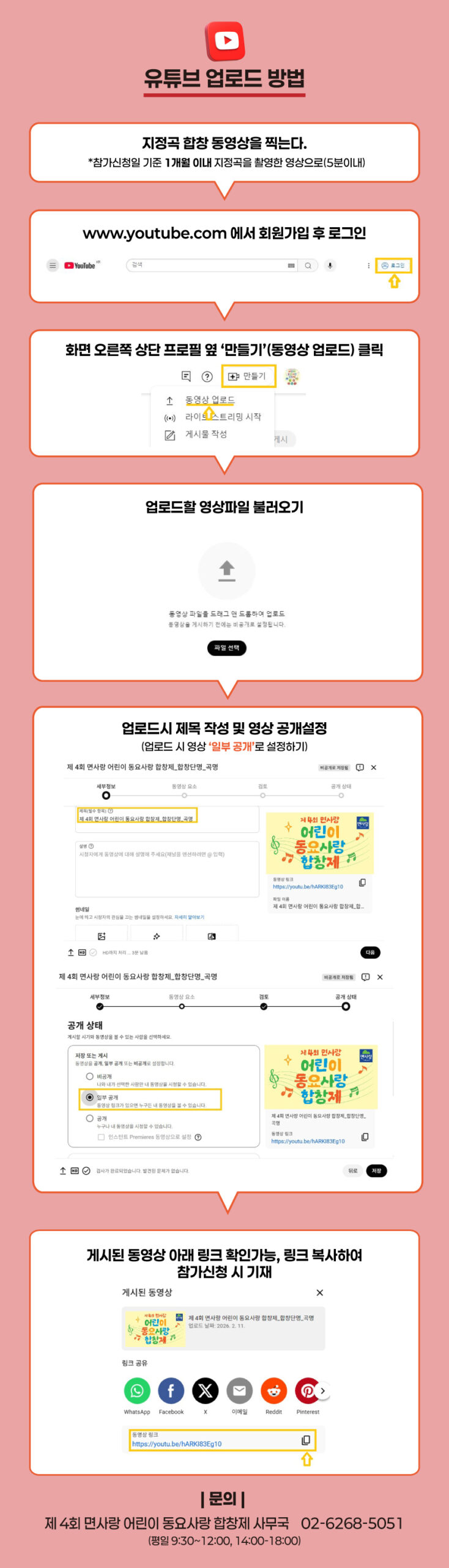 - 유튜브 링크URL을 참가신청시 기재 필수